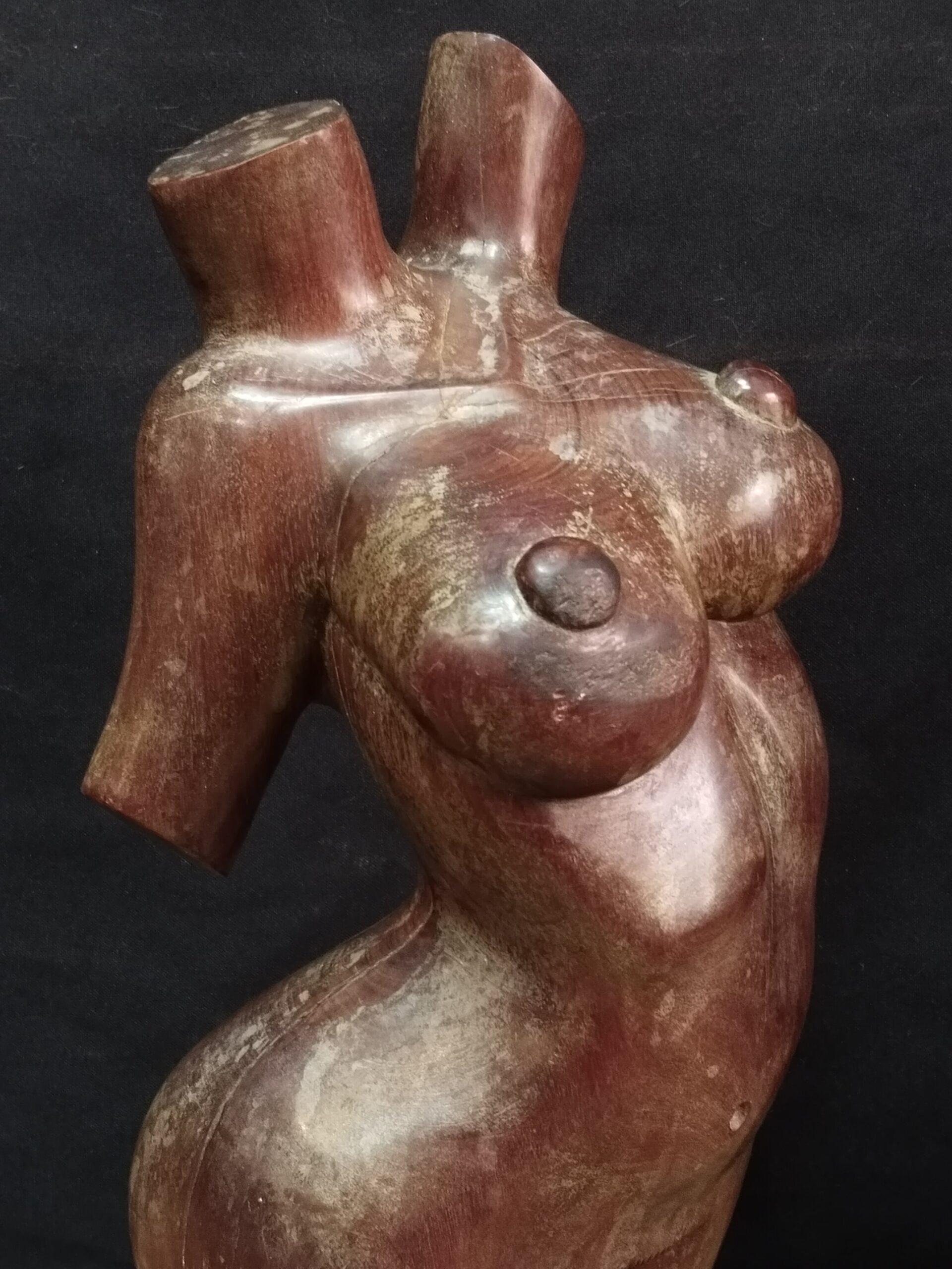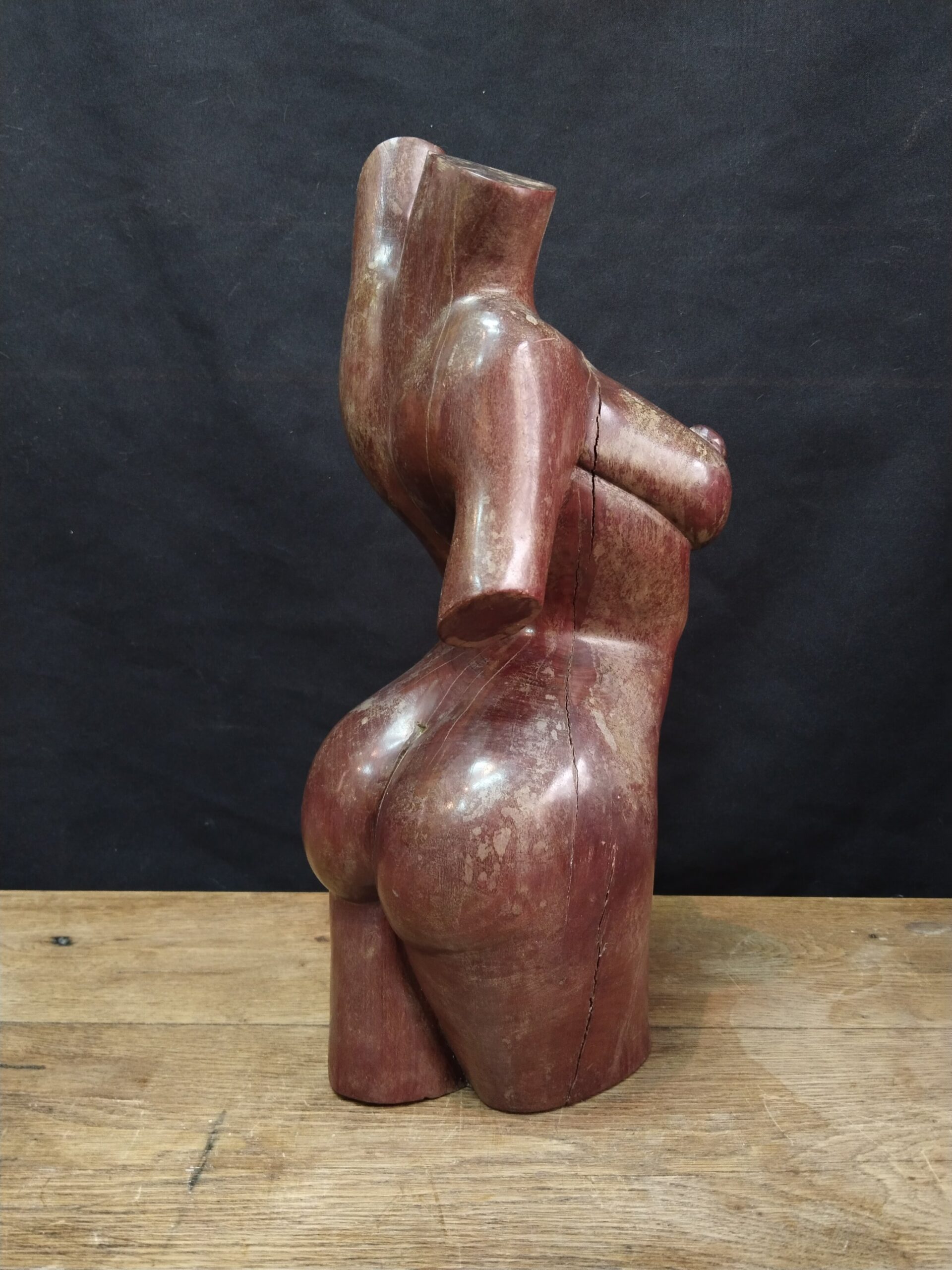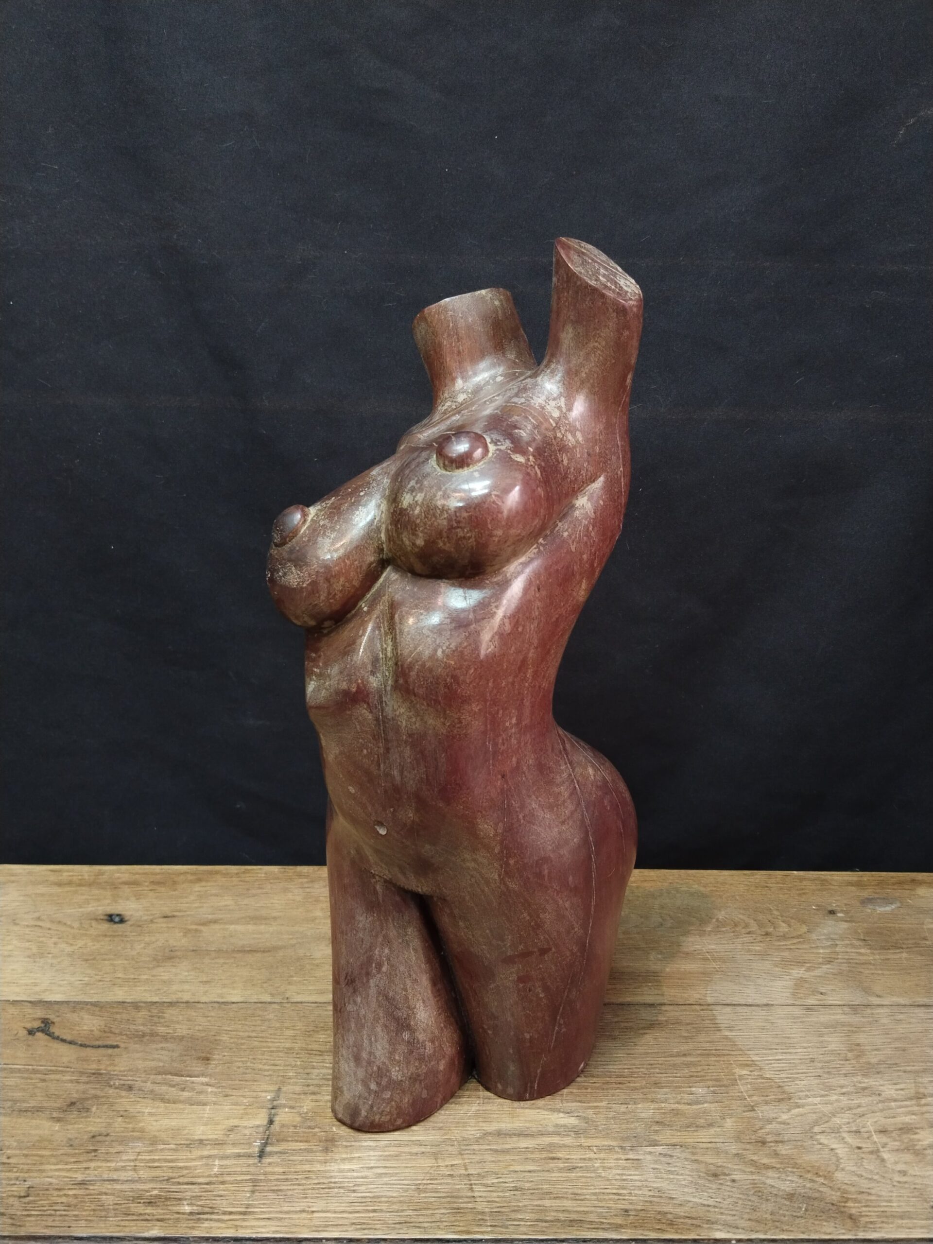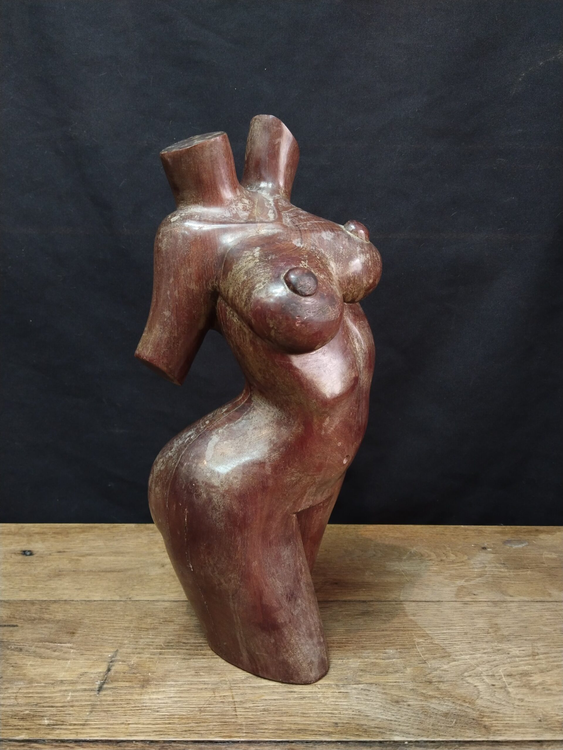 Escultura realizada en madera tropical de gran densidad representando el cuerpo desnudo de una mujer.