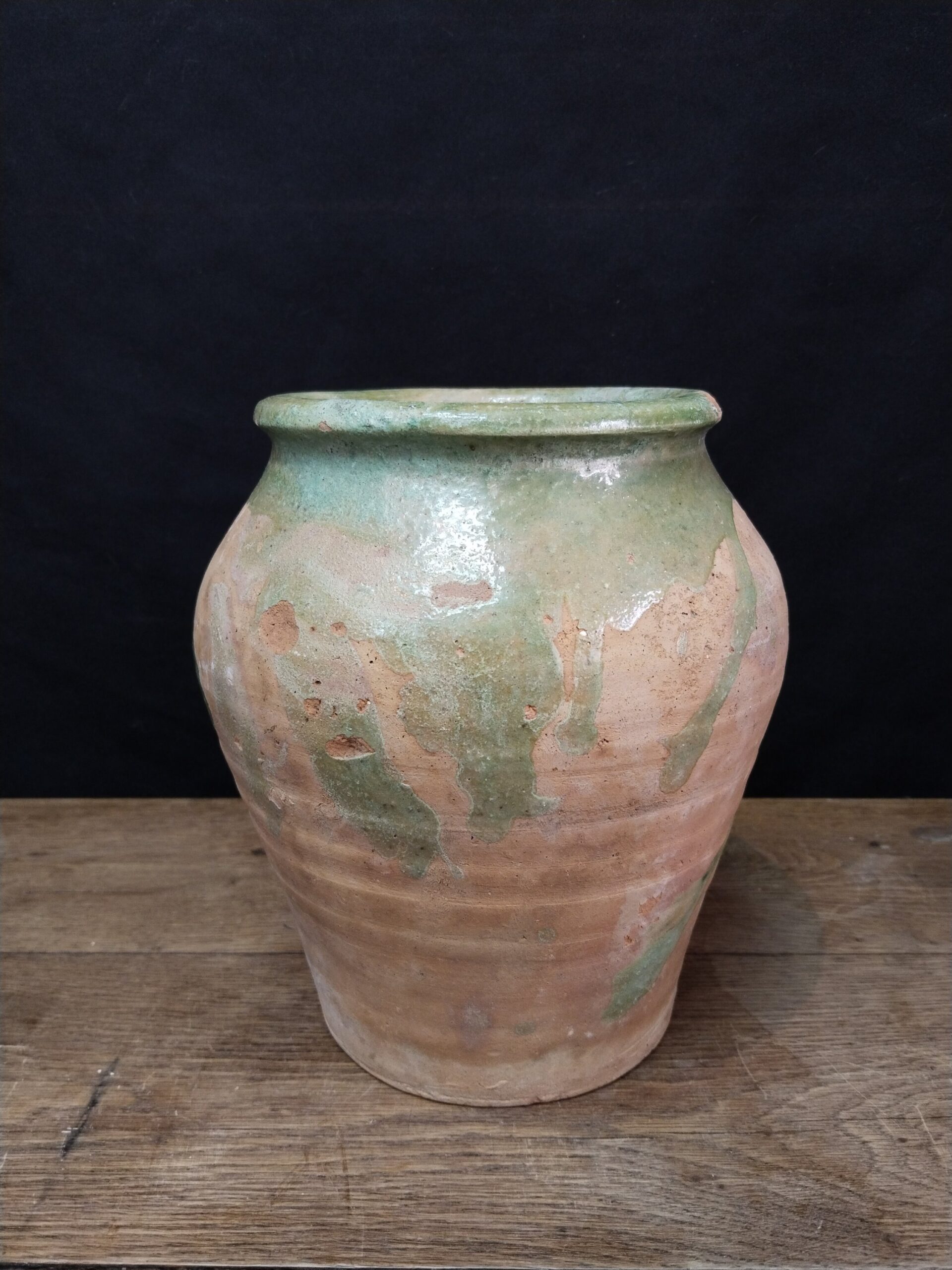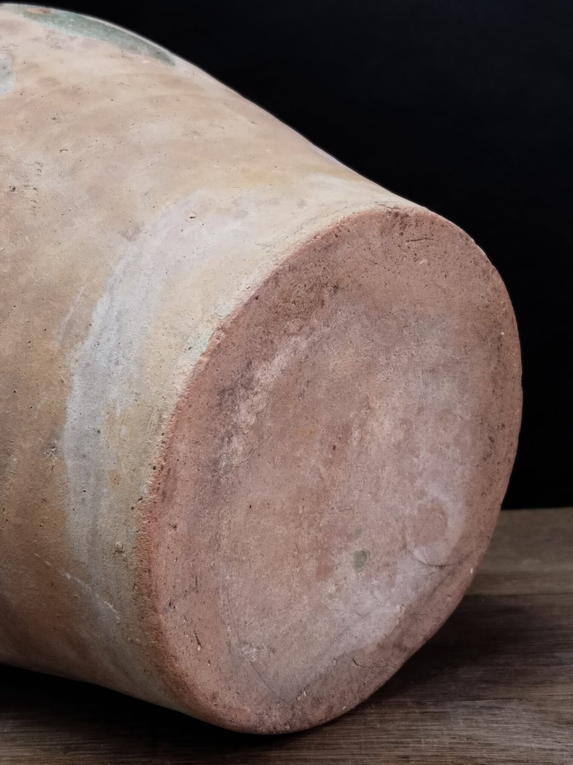 Olla de cerámica parcialmente vidriada en tonos verdes procedente de Castellón.